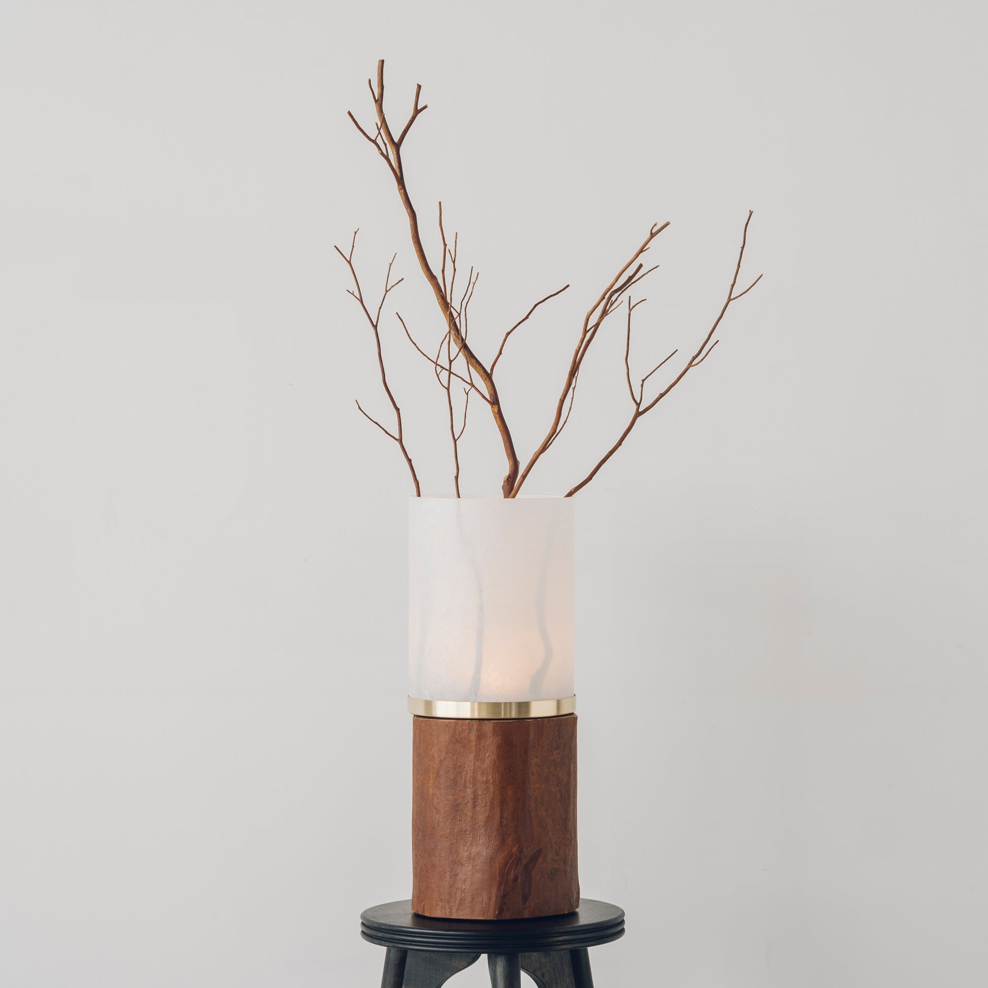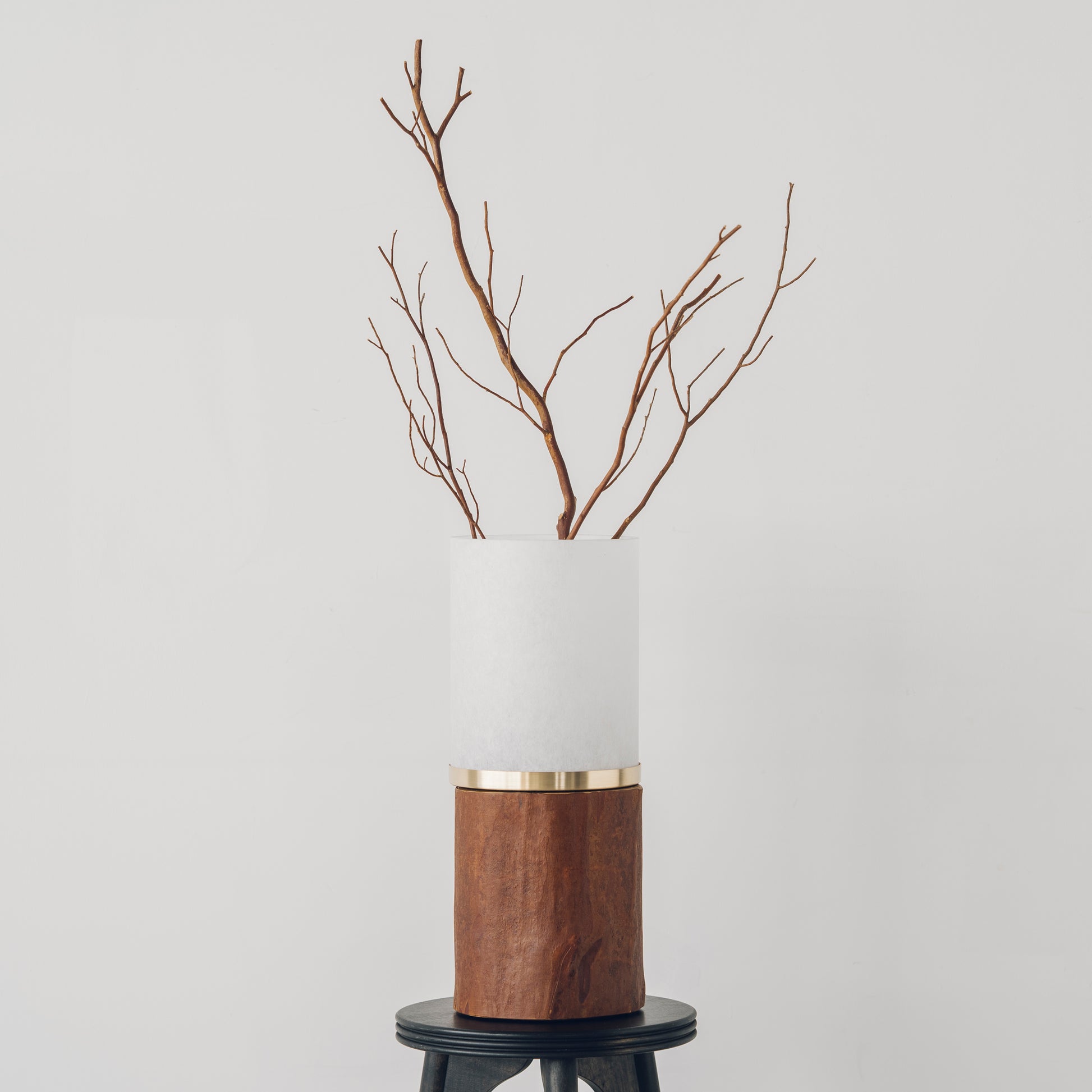ベース(土台)・枝・受皿は、三重県大台町産ヒメシャラの天然木素材を使用。木目、色味、節、形状、サイズはすべて異なり、同じものは一つとして存在しません。自然が生み出した造形を活かし、職人が一つひとつ手作業で仕上げています。それぞれの個体が持つ表情は、量産品にはない「自然と共にあるインテリア」として、空間に静かな存在感をもたらします。時間とともに深まる表情も、自然素材ならではの美しさです。