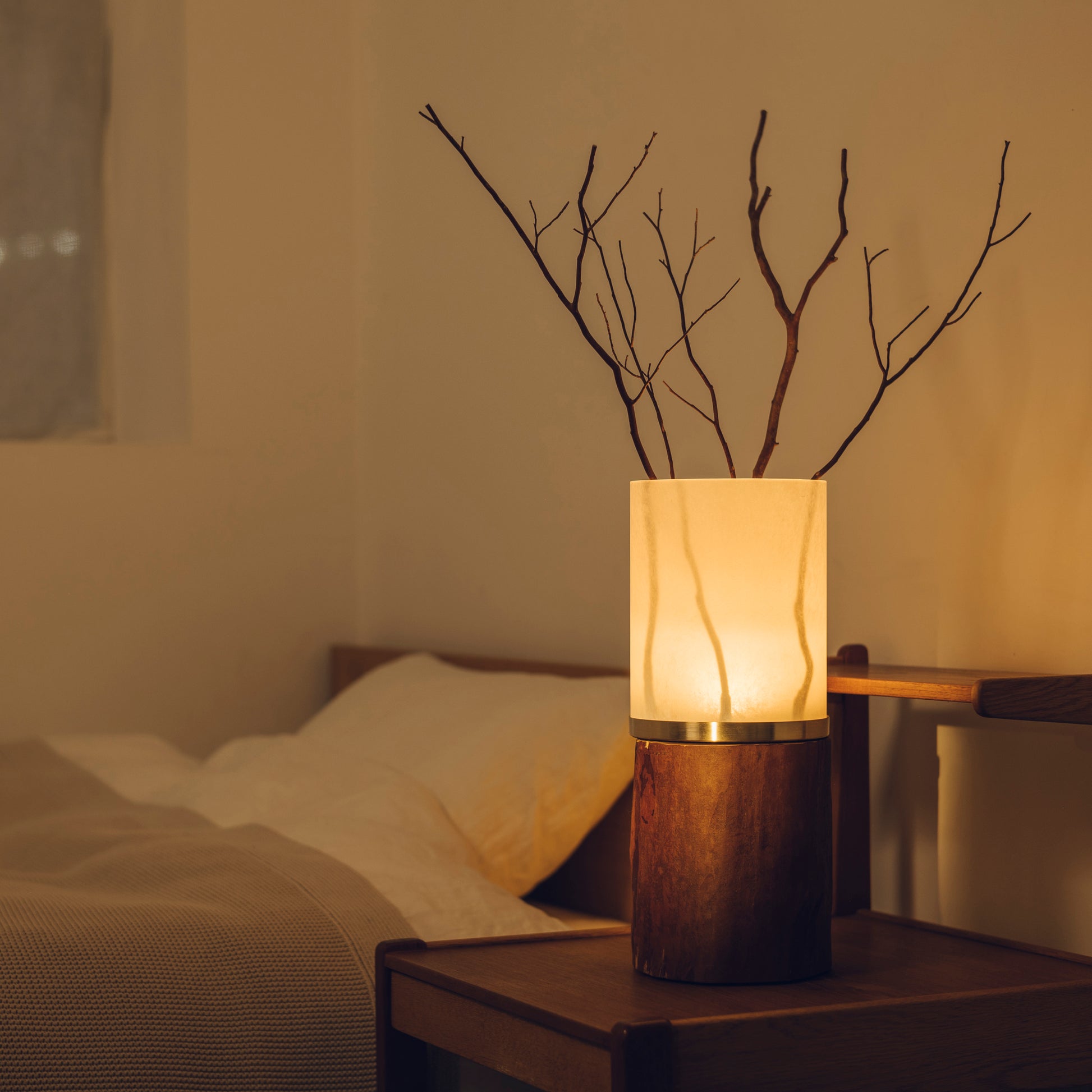 受皿に付属のオリジナルブレンドオイルを垂らすと、シェード下部に設けられた小さなファンが、香りをやさしく空間へと運びます。静音性能に特に優れたファンの採用により、運転音が気になることはほとんどなく、眠りの時間にもそっと寄り添う静けさ。強く主張することなく、ふと気づくほどの穏やかさで、森の香りが静かに広がっていきます。