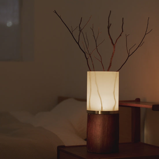 「アロマフランマ」は、香りと光、そして自然素材の美しさを一体として楽しめる、インテリア性と実用性を兼ね備えたアロマランプです。自然素材と職人の手仕事が融合し、すべてが一点ものとして仕上げられています。