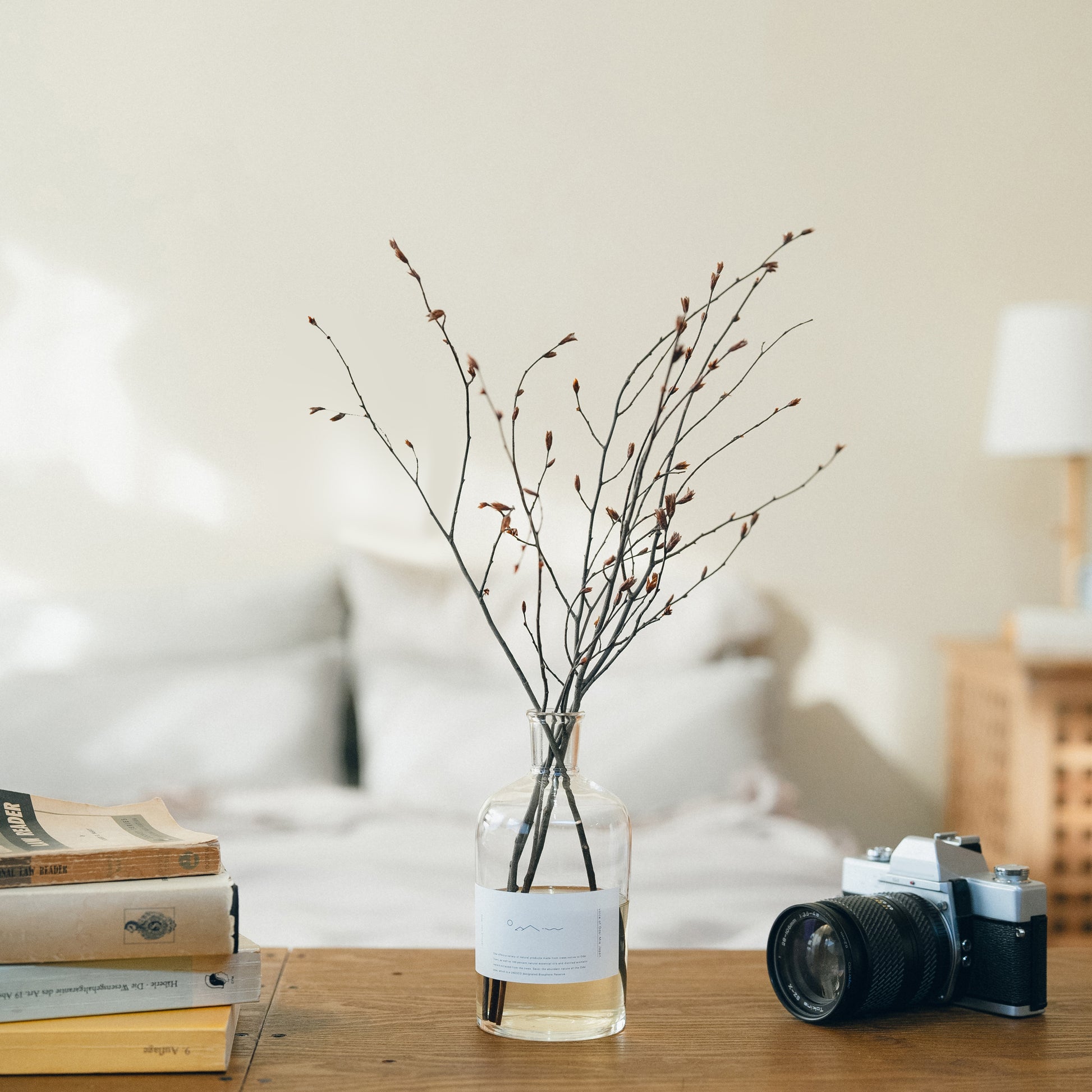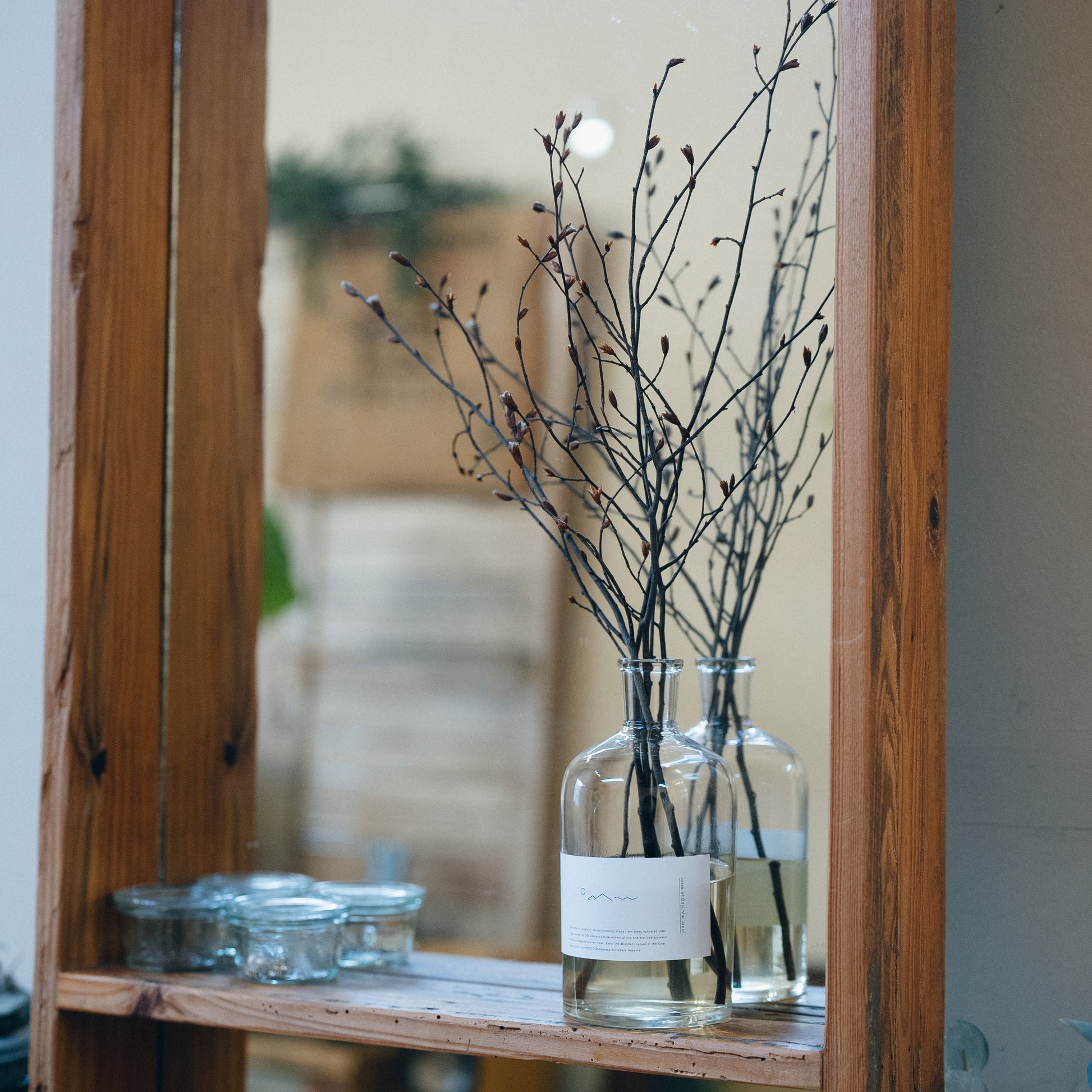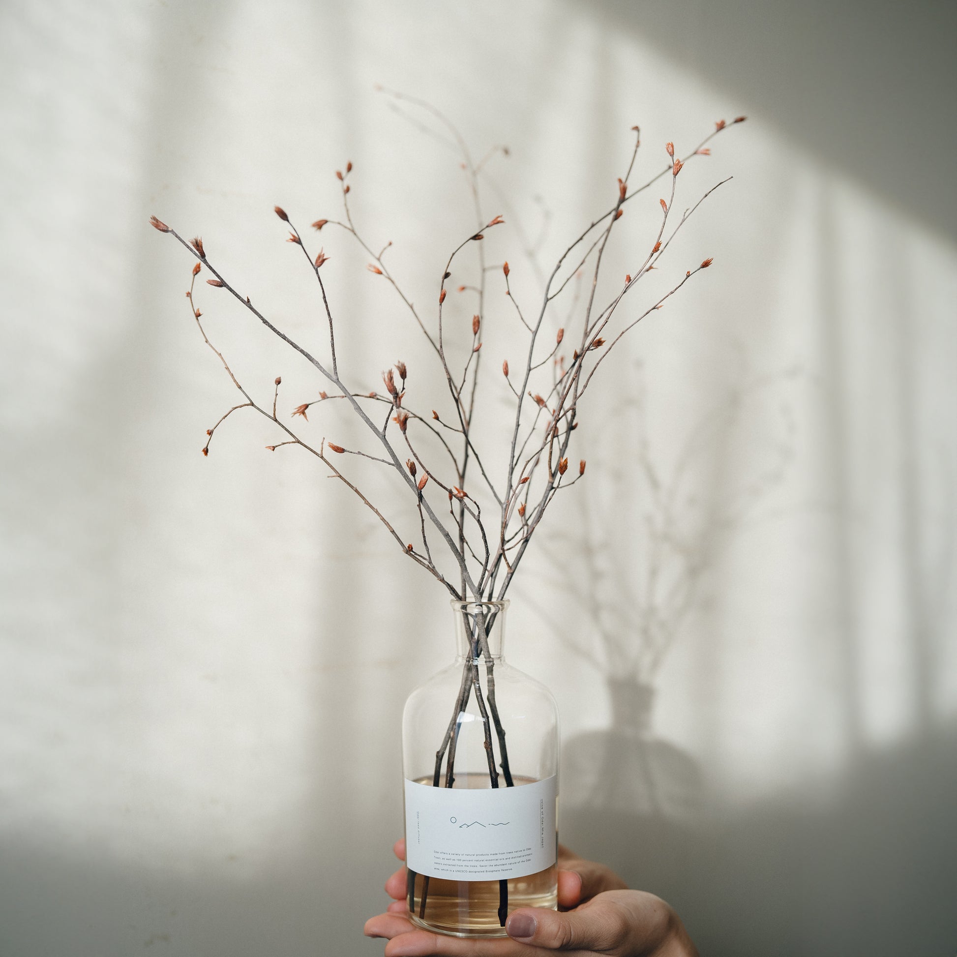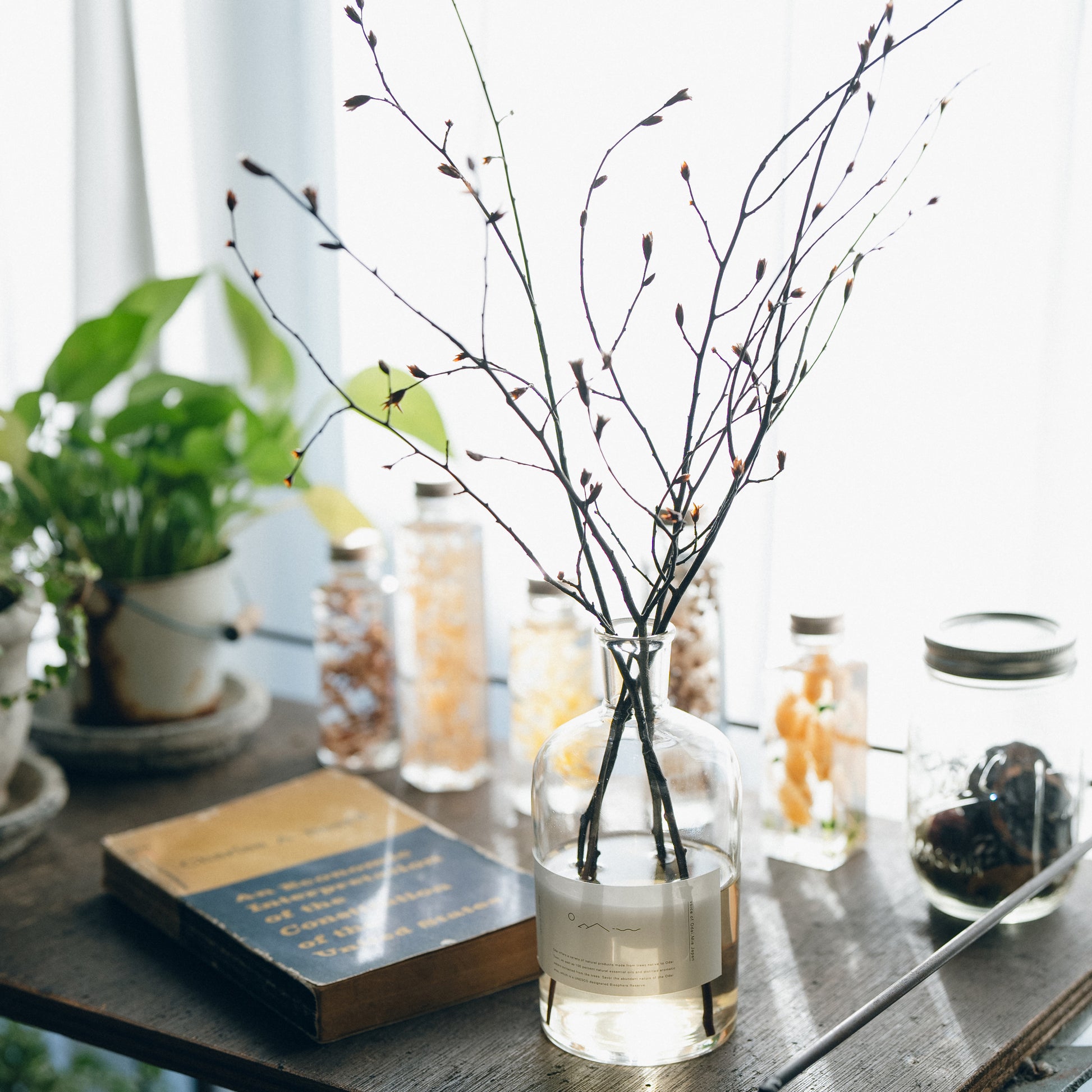 ・天然素材の為、枝にカビが発生する場合がございます。万が一カビが発生してしまった際には、水でしっかりと洗い流し、天日干しをしていただき十分に乾燥させた後に再度ビンに挿してご使用ください。